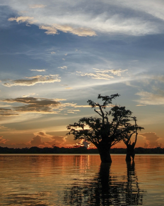 Viejos y poderosos árboles conocidos como guarangos de agua o Macrolobium resisten la temporada seca y de lluvias en la Reserva de Producción de Fauna Cuyabeno, sirven de albergue a flora y fauna cumpliendo un papel ecológico, ademas de ser atractivos para los turistas que visitan este lugar, beneficiando las comunidades indigenas del turismo.