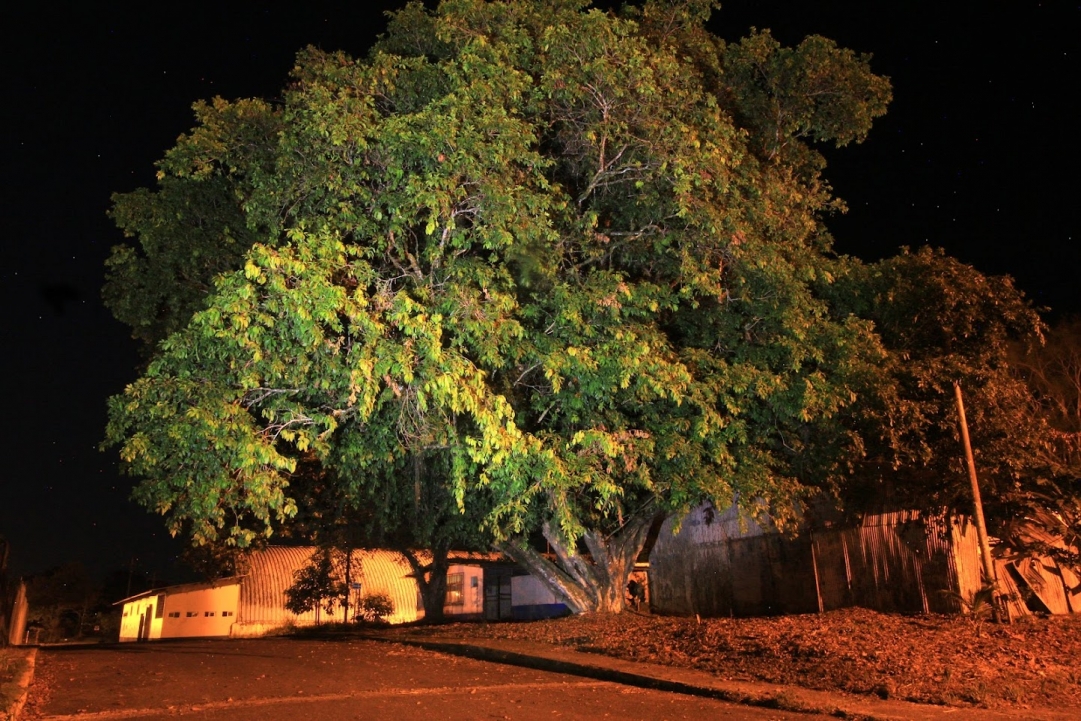 Hermoso árbol donde da cobijo a bastantes pajaritos, árbol tomado en la noche donde podemos controlar los luz por medio de tres reflectores es un árbol milenario que da una muy buena sombra y nos purifica el aire