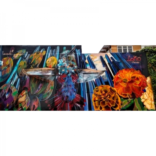 Mural ,la naturaleza y la vida, realizado con pigmentos naturales.